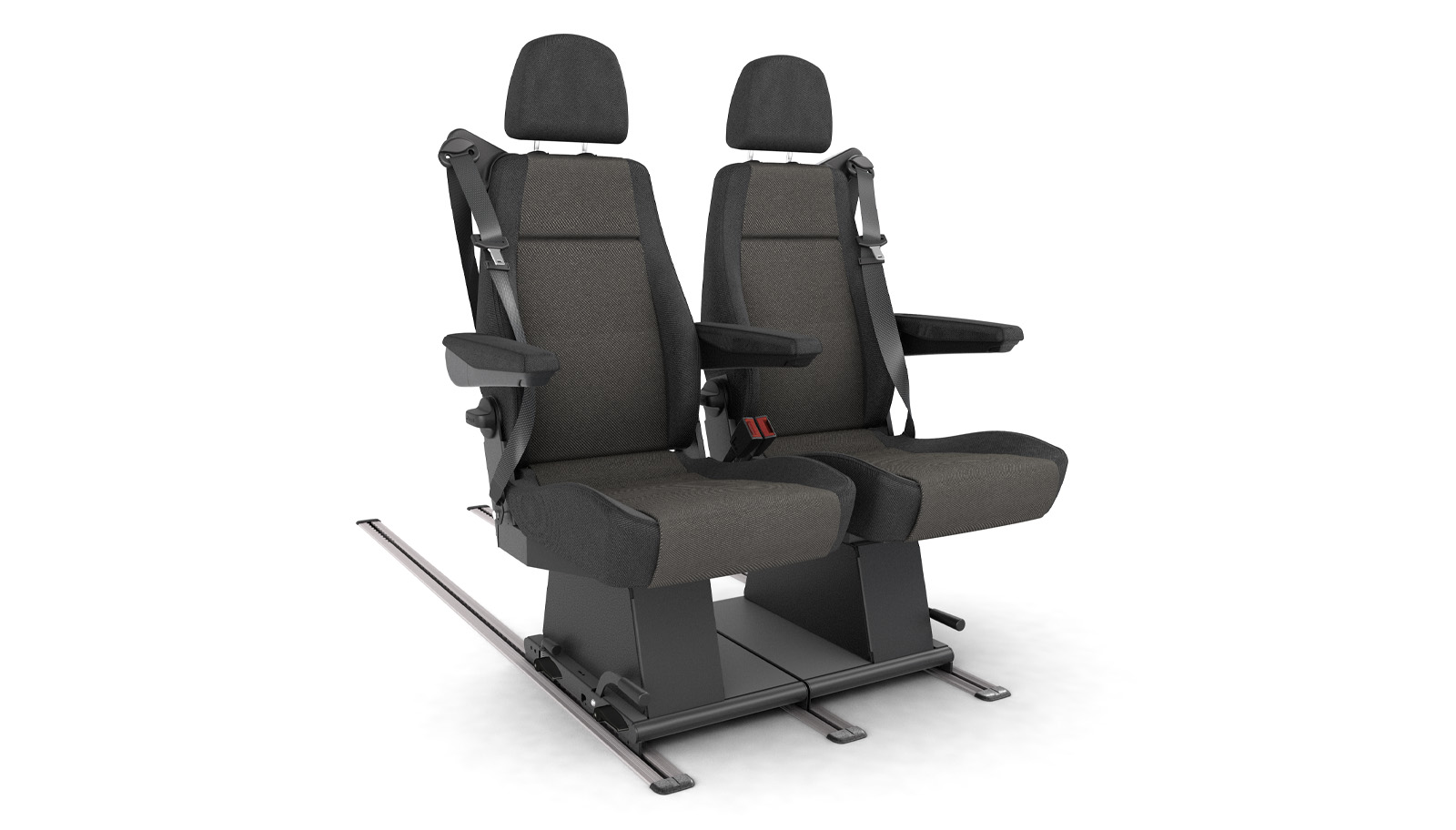Maximum flexibility in the van, completely removable seat, repositionable on rails